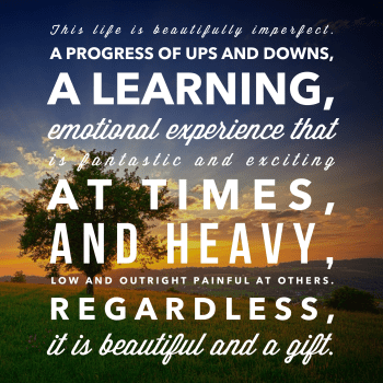 This life is beautifully imperfect. A progress of ups and downs, a learning, emotional experience that is fantastic and exciting at times, and heavy, low and outright painful at others. Regardless, it is beautiful and a gift. One of my favorite books when I was younger was Pilgrim’s Progress. This journey of a 1600’s pilgrim leaving his home and family to embark on a journey to find hope, salvation and truth, faces many trials, obstructions and pitfalls. Fear and doubt are often a common theme for the pilgrim, Christian, as he veers from the path a number of times, but he always makes his way back to it very quickly. He eventually finds freedom from his burden, finding the truth – coming to realization what it it means to be the person he was intended to be. But that’s just the beginning of his journey.