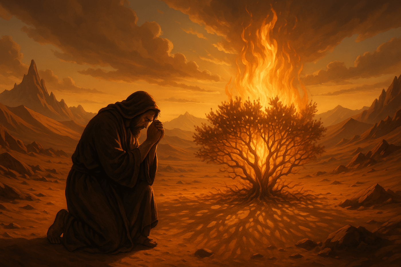 Pharaoh wanted Moses deader than disco, and our former prince found himself running for his life into the wilderness of Midian—trading silk sheets for sand dunes, palace walls for endless sky, and royal feasts for whatever he could scrounge up in the desert.