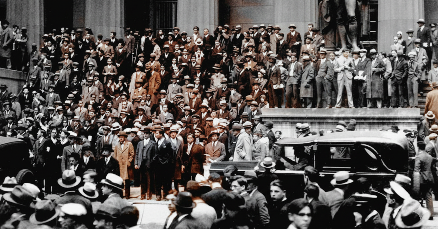 There’s a photograph from 1929 I think about. Black Thursday. October 24th. Crowds outside the New York Stock Exchange. The faces are blurred by long exposure, but you can read the posture—hats tilted at angles suggesting desperation or disbelief.