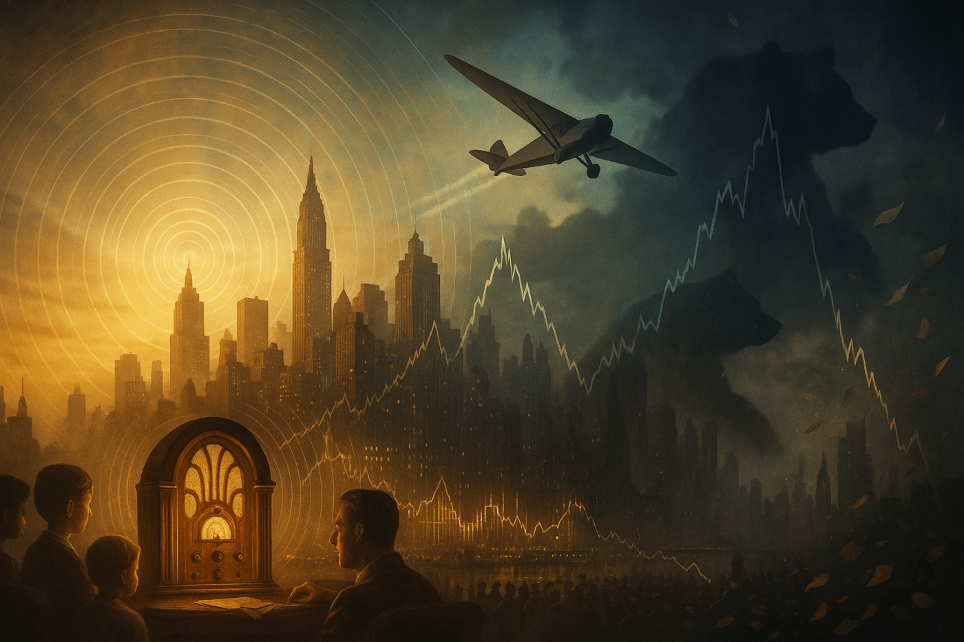 In 1919, RCA began broadcasting and the world had never seen anything like it. Voices traveling through the air without wires seemed like sorcery. By 1929, RCA was the most heavily traded stock alongside Ford Motor Company—the Nvidia of its day. Then came October 1929. By May 1932, radio stocks had lost 97 percent of their value.