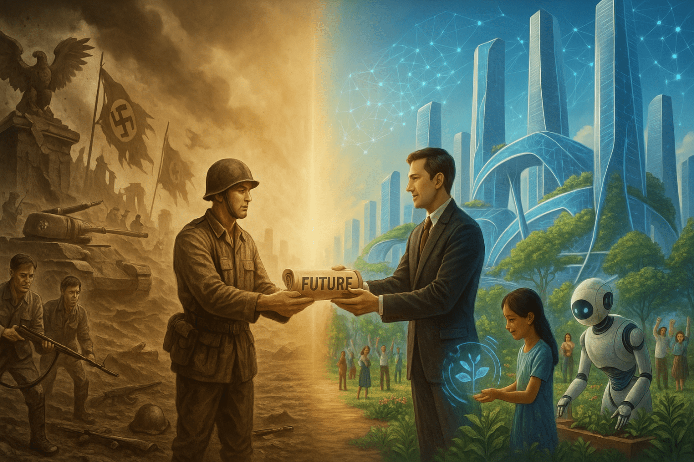 The generation that beat fascism didn’t do it by thinking small. They didn’t wring their hands about whether new technologies would disrupt their livelihoods. They looked at an existential crisis and asked: “What civilization do we want to build on the other side?”