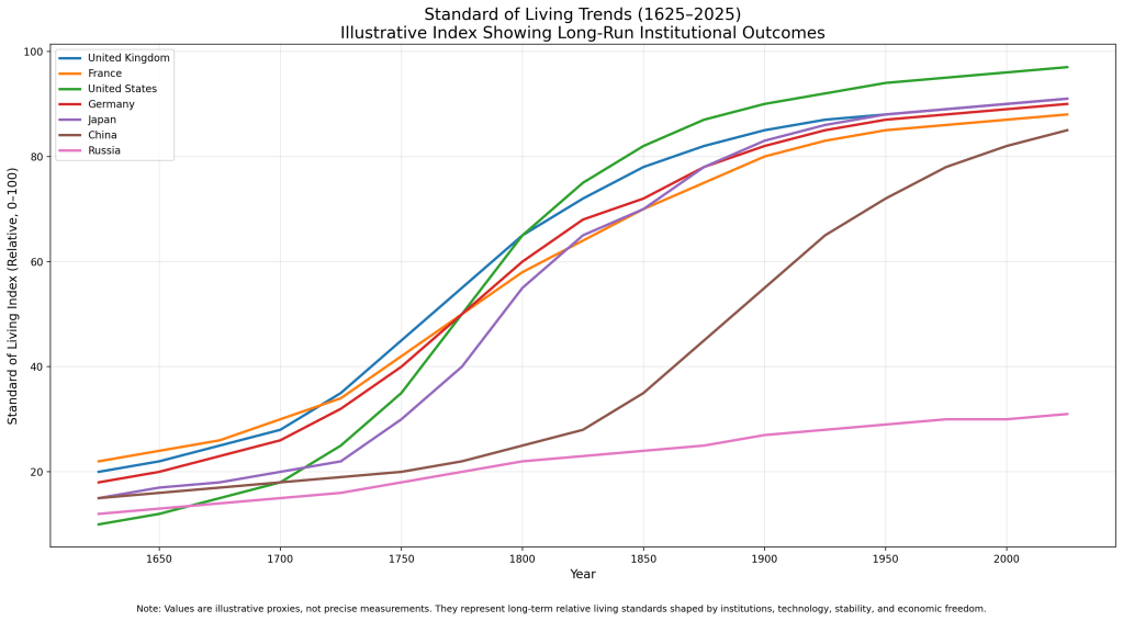When people are afraid to fail publicly, innovation stalls. When contracts depend on relationships, capital misallocates. When courts serve power, ideas flee. Growth becomes mechanical rather than creative.