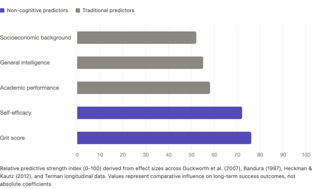 At West Point, a cadet’s grit score was the single best predictor of surviving Beast Barracks, outperforming intelligence, leadership ability, and physical fitness combined (American RadioWorks). Talent tells you how fast you acquire a skill. Grit tells you whether you will show up long enough for it to matter.