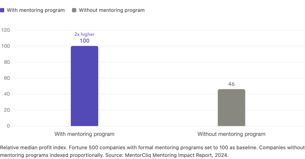 But psychologist Richard Wiseman found that so-called lucky people had behavioral patterns that mathematically increased their odds of encountering opportunity. They built wide networks. They reframed setbacks as data. They were not luckier. They were systematically creating more surface area for luck to land on. Mentorship accelerates this dramatically. As of 2024, median profits at Fortune 500 companies with mentoring programs were more than double those without (MentorcliQ).