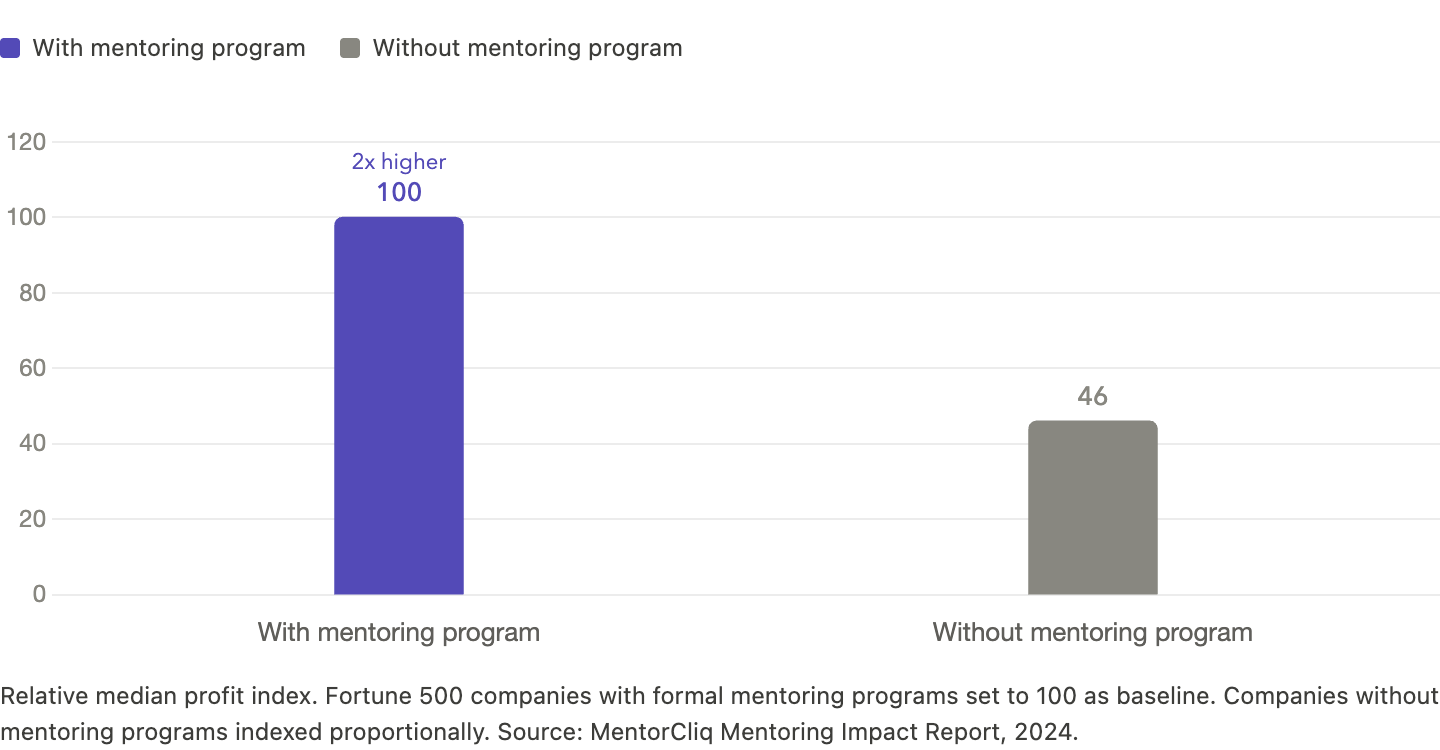 But psychologist Richard Wiseman found that so-called lucky people had behavioral patterns that mathematically increased their odds of encountering opportunity. They built wide networks. They reframed setbacks as data. They were not luckier. They were systematically creating more surface area for luck to land on. Mentorship accelerates this dramatically. As of 2024, median profits at Fortune 500 companies with mentoring programs were more than double those without (MentorcliQ).